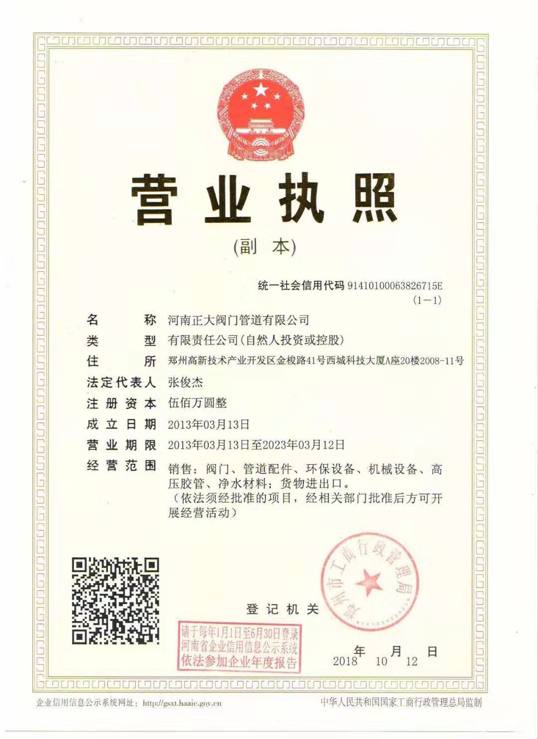 河南正大閥門管道有限公司